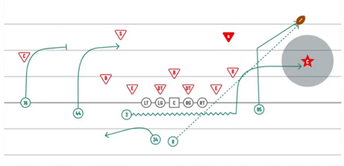 Stefanski also leaned heavily on 12 and 13 personnel to dictate defensive responses, create favorable match-ups, and simplify the quarterback’s decision making. Those heavier groupings forced defenses to declare coverage and personnel, allowing Gabriel to identify defensive leverage before the snap, find the best match-up after the snap, and get the ball out quickly.