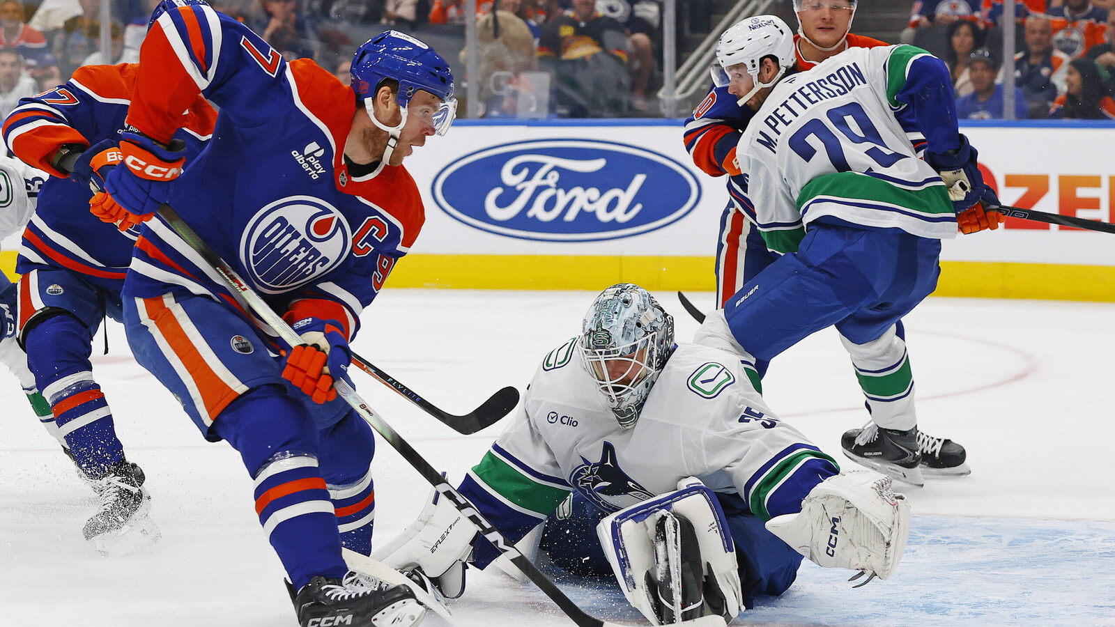 Draisaitl carries the puck into the zone and finds McDavid with speed. He walks into the slot and rips a shot off Demko’s pads, but he’s unable to corral the rebound, leaving a sitter for Trent Frederic to tap home on his second attempt.