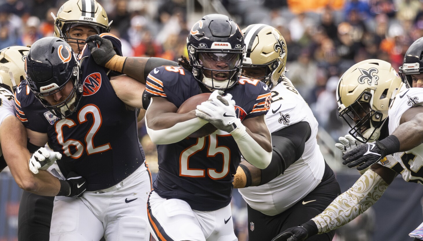 2.On the other hand . . . The Bears had four sacks and seven quarterback hits on the Saints’ Spencer Rattler, but little of the pressure came from the right side against left tackle Kelvin Banks Jr., who has been the plug-and-play rookie the Bears were looking for in the draft.