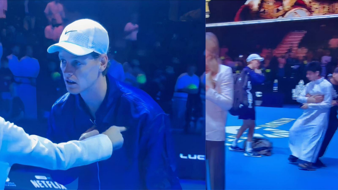 Security at the ongoing Six Kings Slam event in Riyadh, Saudi Arabia, had to usher a seemingly overzealous fan away who had made their way to the court only to confront Jannik Sinner and poke him on the chest.