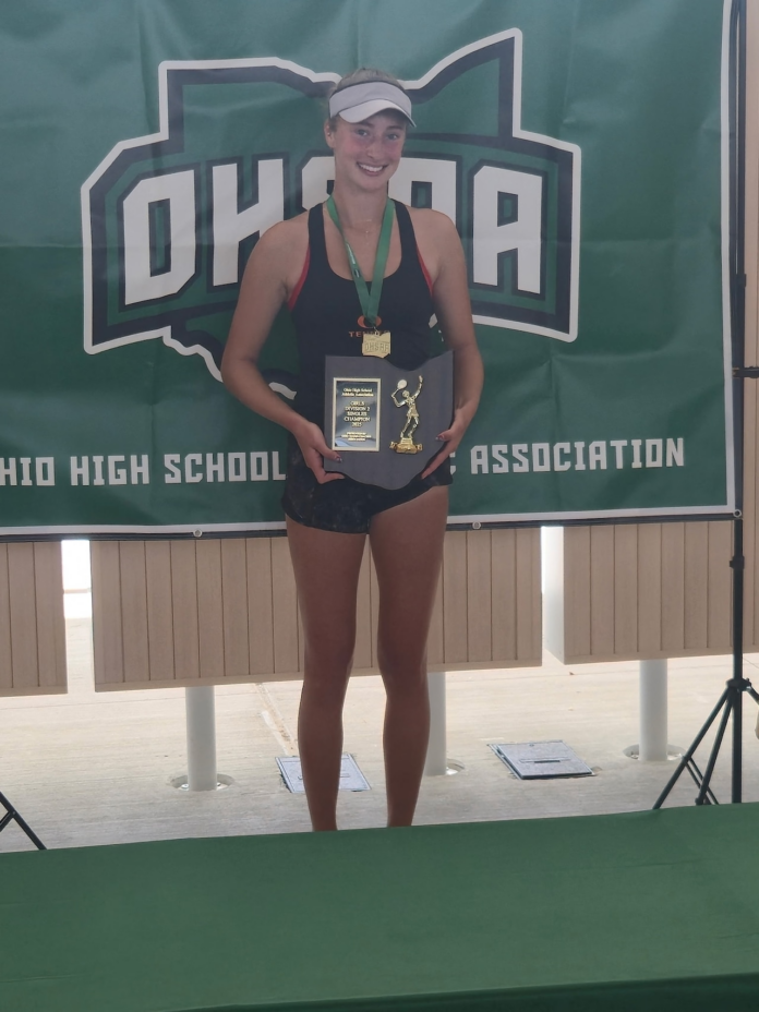 Hayden, the third-ranked sophomore in Ohio (according to Tennis Recruiting Network), dominated her way to the final, earning straight set wins over Uloedo Ezike of Lexington (6-0, 6-0), Mila Gelbart of Dayton Oakwood (6-1, 6-0), and Abigail Lynch of Gilmour Academy (6-4, 6-3).