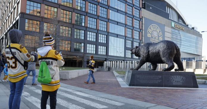 Buffalo News reporter Rachel Lenzi heads to the Buffalo Sabres morning skate at TD Garden in Boston on Saturday, Oct. 11, 2025.