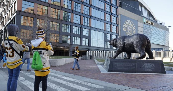 Buffalo News reporter Rachel Lenzi heads to the Buffalo Sabres morning skate at TD Garden in Boston on Saturday, Oct. 11, 2025.