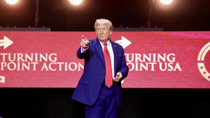 Before Trump’s arrival, Lions receiver Amon-Ra St. Brown celebrated a touchdown by mimicking the now-viral ‘Trump dance’, a tongue-in-cheek move popularised by athletes last year.
