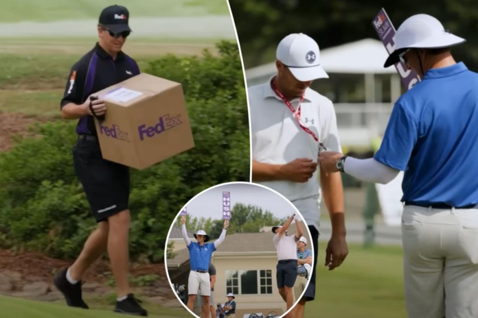 The legendary former Giants quarterback pretended to be a FedEx delivery driver who was serving as a tournament volunteer for the FedEx St. Jude Championship at TPC Southwind in Memphis.